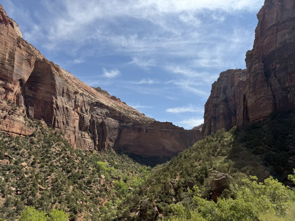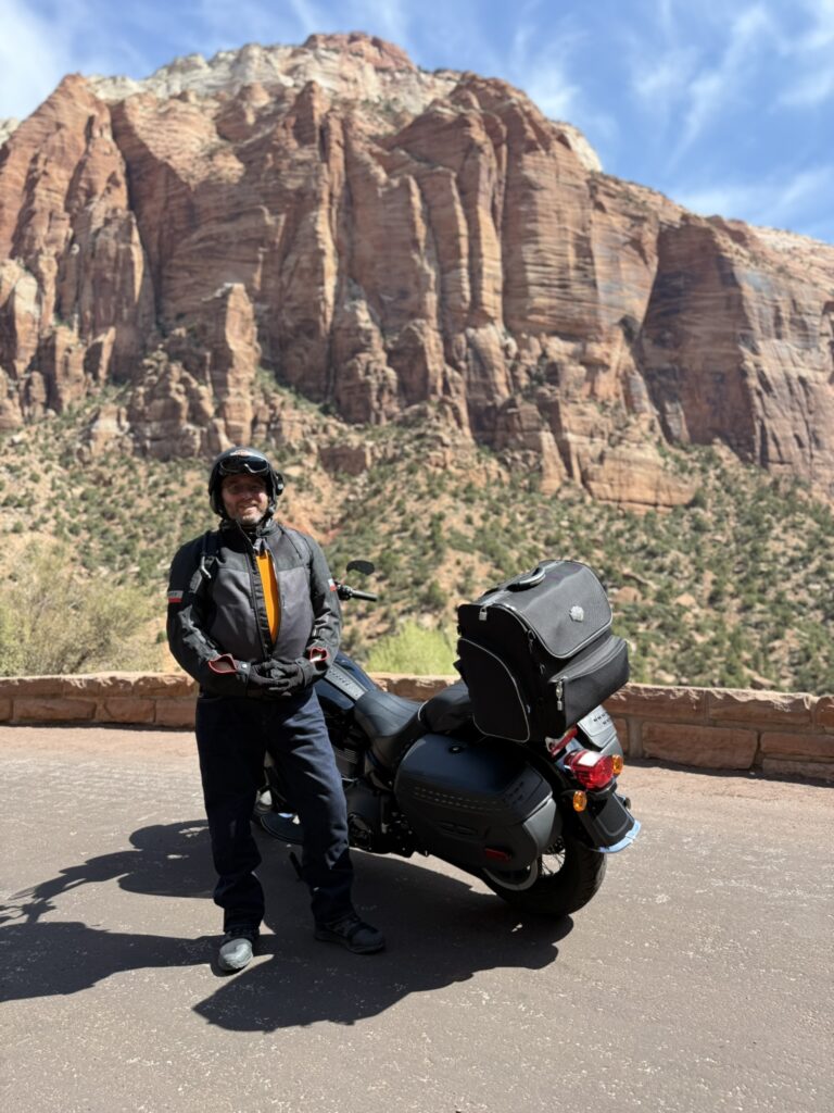 A few more miles of beautiful twisties, hairpins and vistas, and the road flattened out, and wound more gently through pretty, but less impressive scenery for a few more miles, until I came to the exit of the park. I loved this place, and will be back – Lena and I need to spend more time in Utah!