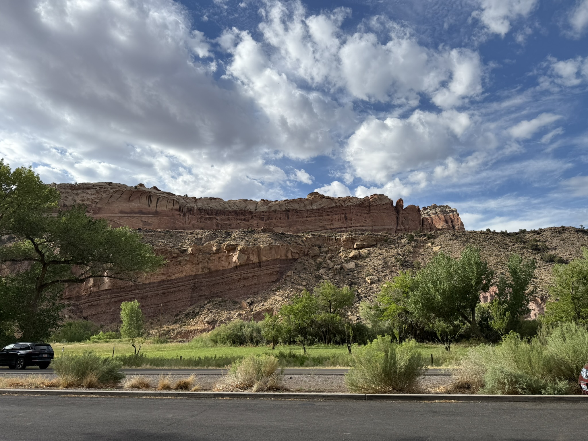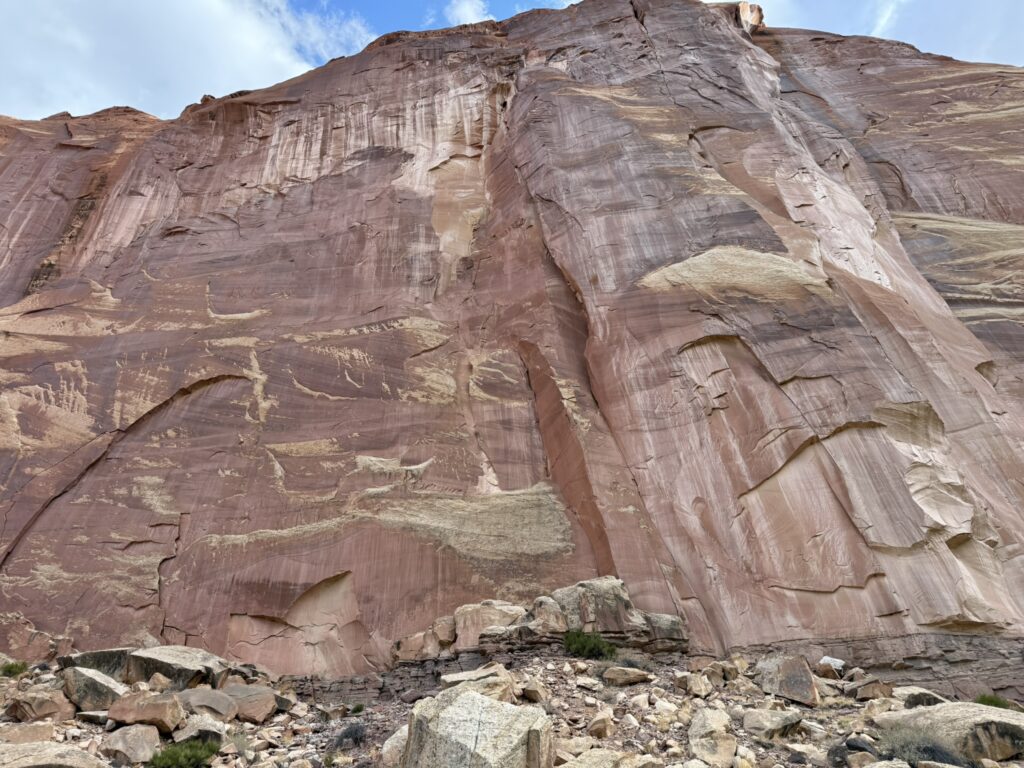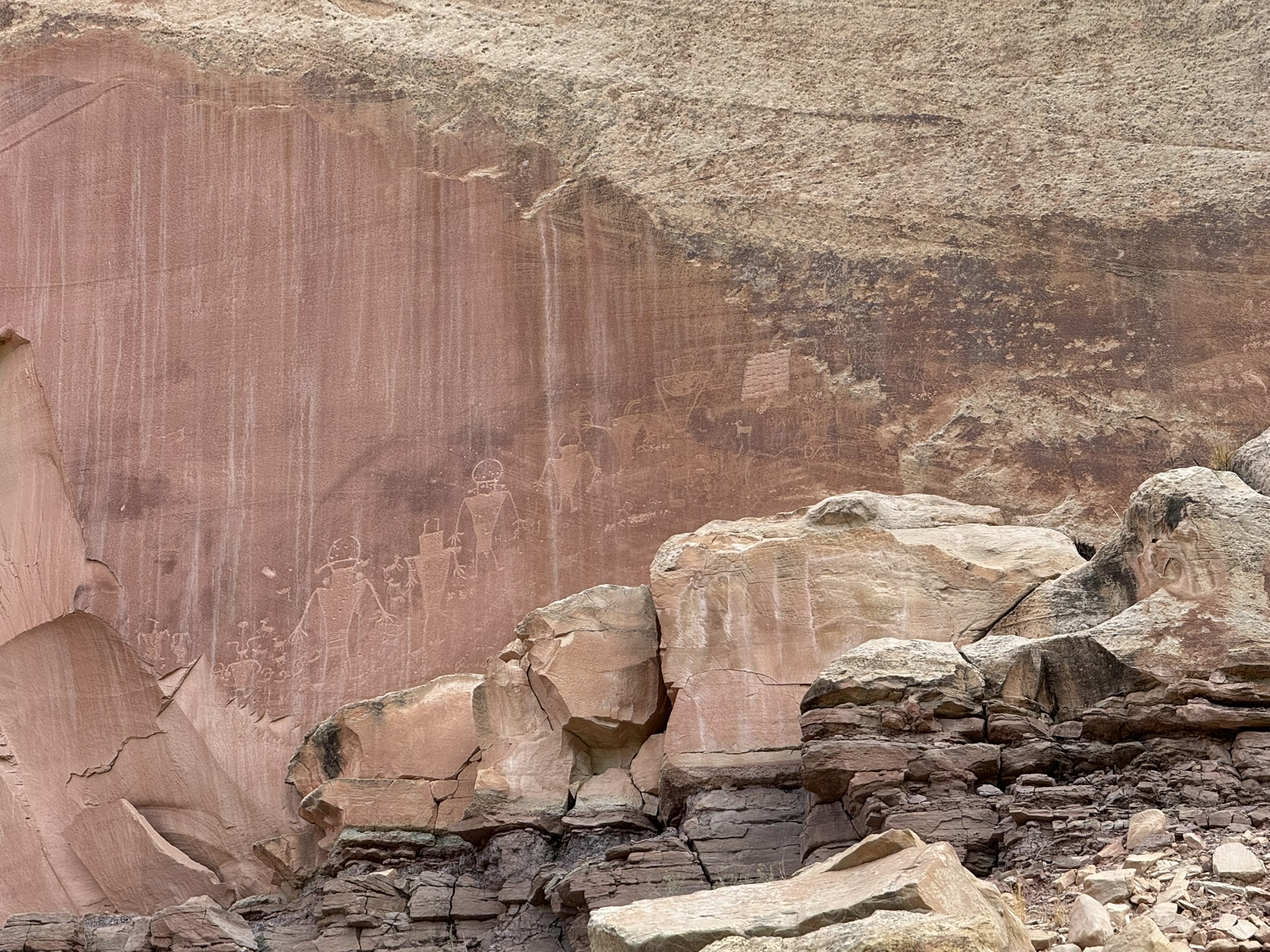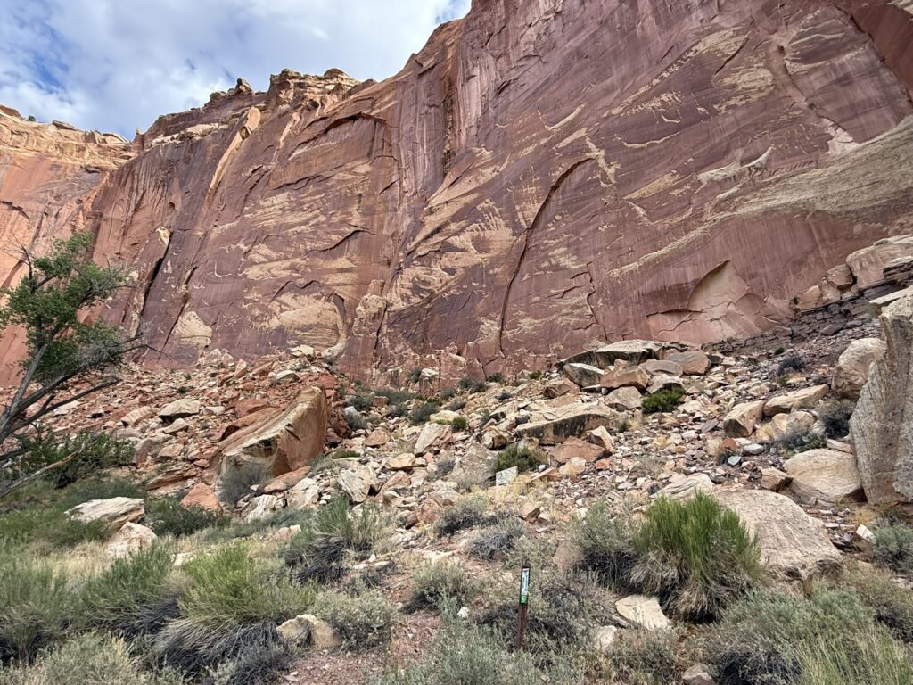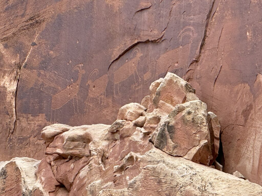 Not far out, I went the opposite direction through the Capitol Reef park that I had passed through on the way to Vegas. It was nice to see the views from the other direction. I stopped to look at the petroglyphs there.